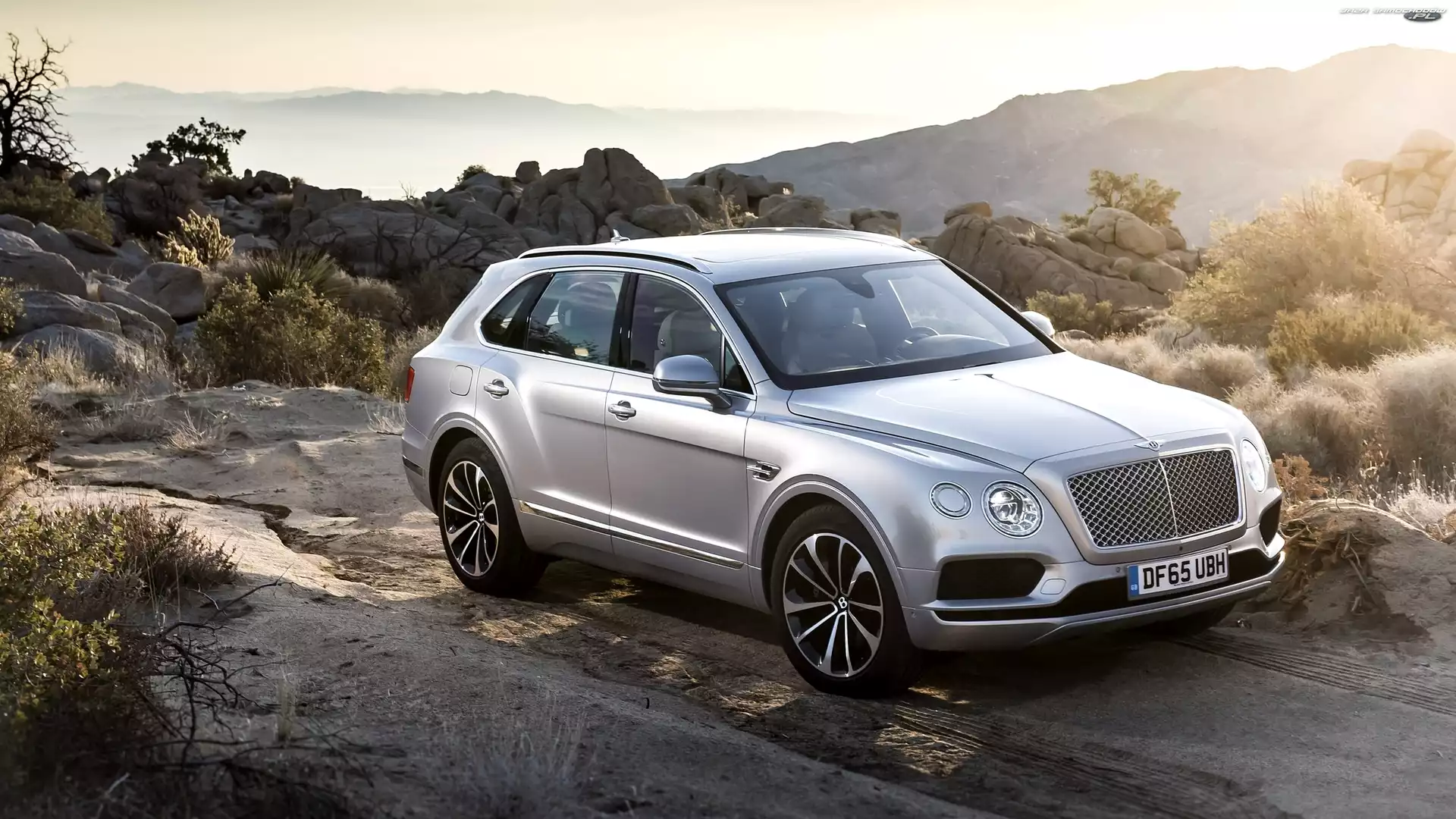 Samochód: Bentley Bentayga, Rośliny, Srebrny, Skały