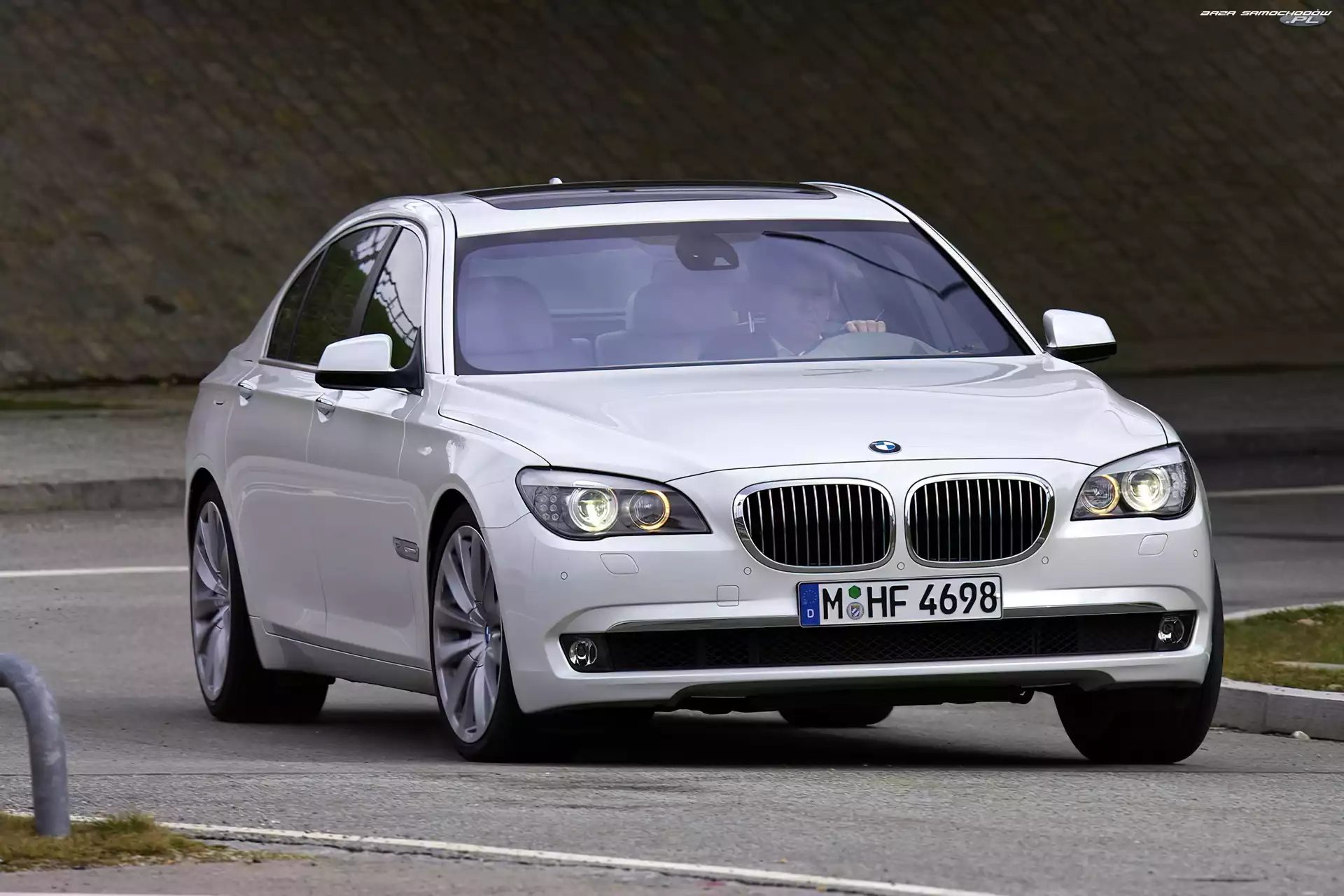 BMW F01, Zakręt, Biała, Tor- Zdjęcia samochodów