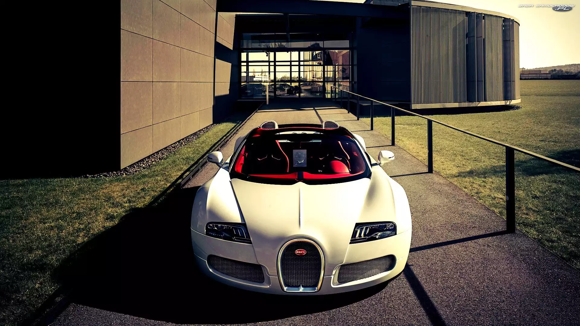 Budynek, Droga, Bugatti, Kremowy, Veyron- Zdjęcia samochodów
