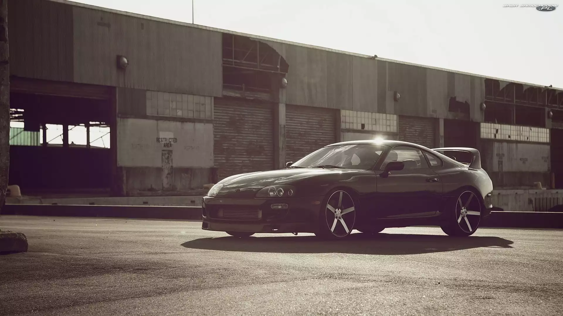 Czarna, Toyota, Hala, Opuszczona, Supra, Felgi- Zdjęcia samochodów
