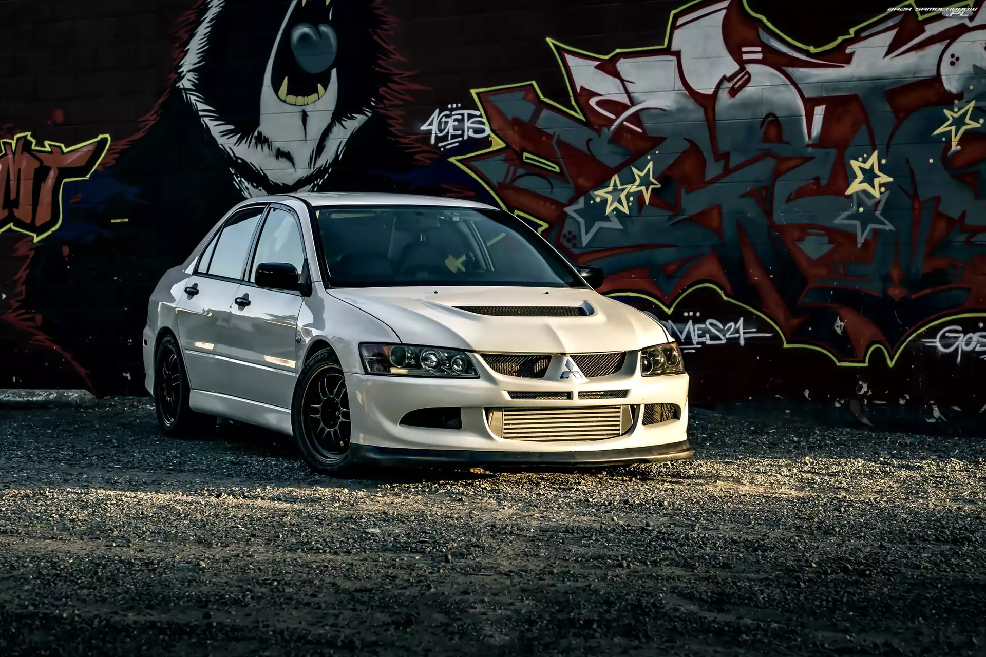 Graffiti, Białe, Mitsubishi Lancer- Zdjęcia samochodów