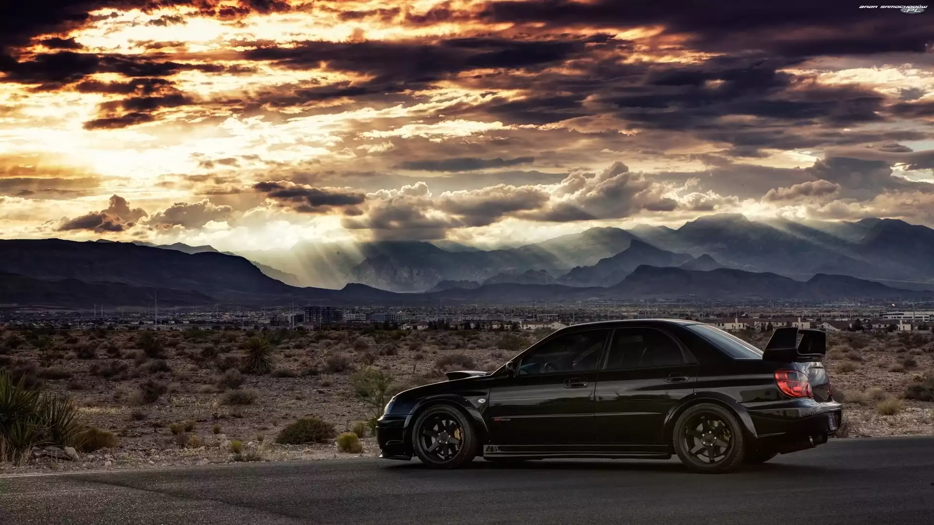 Samochód: Chmury, Pustynia, WRX STi, Subaru Impreza, Miasteczko